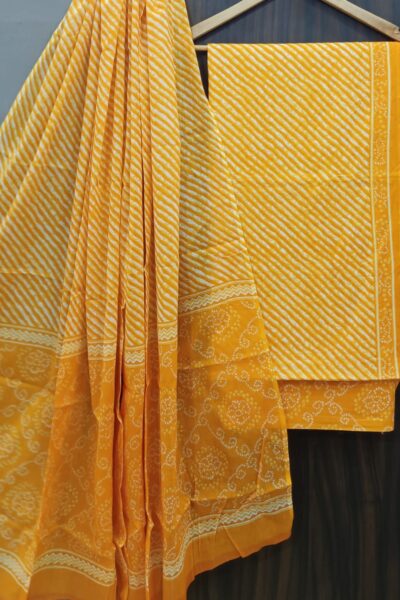 Yellow, White and Black Cotton shibori Top and Black plain Bottom with Cotton Dupatta