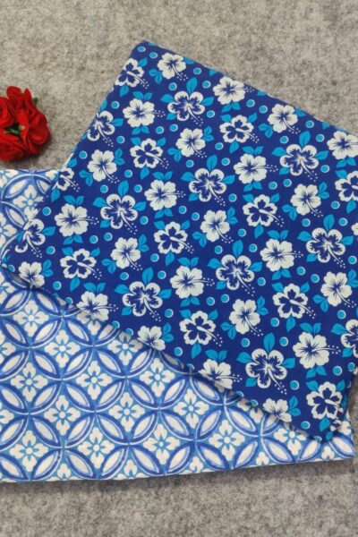 Cobalt Blue allover Floral Top with Beige printed Bottom and Cotton Dupatta