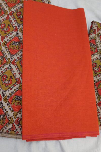 Rust plain Mangalgiri Cotton Top with Offwhite printed Bottom and similar Dupatta