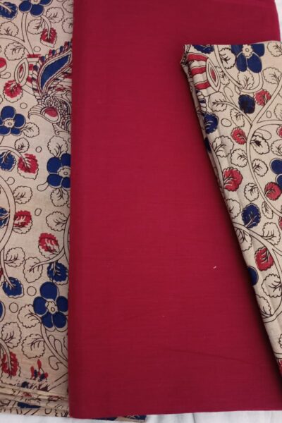 Red plain Mangalgiri Cotton Top with Offwhite Floral Bottom and similar Dupatta