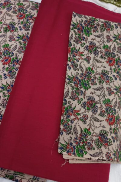 Red plain Mangalgiri Cotton Top with Offwhite printed Bottom and similar Dupatta