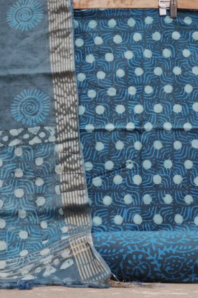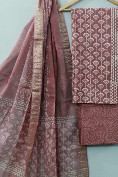 Earthy colour Cotton Top with Batik style Motif and Cotton Bottom with Chanderi Dupatta