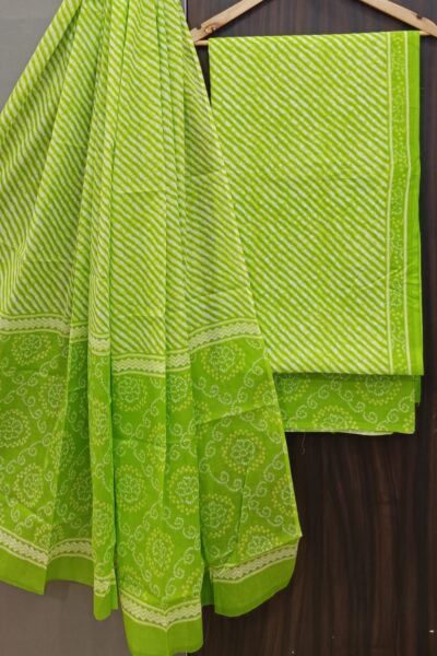 real jaipuri printed Cotton two piece set. Pure Cotton hand block printed Suit . Top Cotton. Bottom pure Cotton. Length 2.5mtr. Width 44′