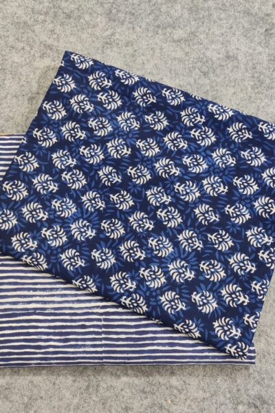 Floral alloverprint light Blue Cotton Bottom with White and Blue stripes Bottom