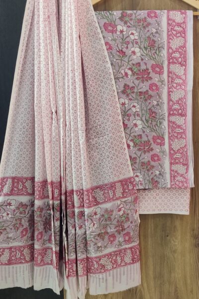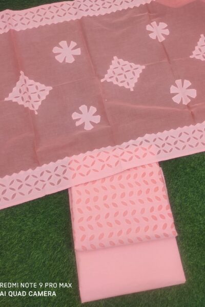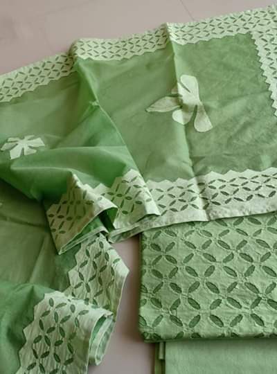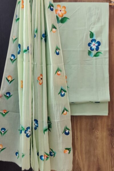 Light Green handpainted Cotton top and handpainted Cotton Dupatta with Plain cotton bottom