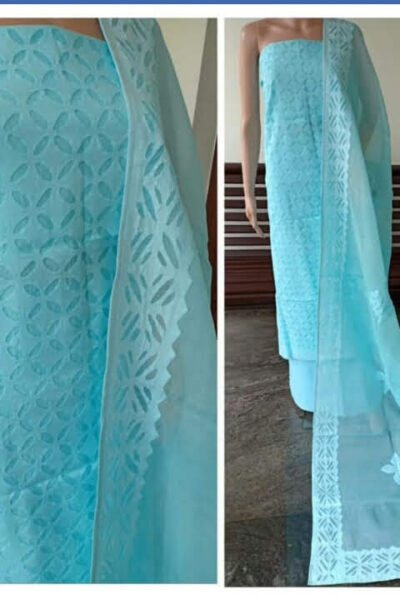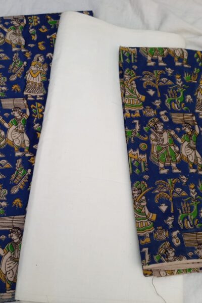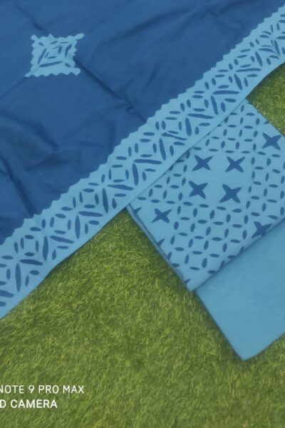 Offwhite plain Mangalgiri Cotton Top with Blue printed Bottom and similar Dupatta