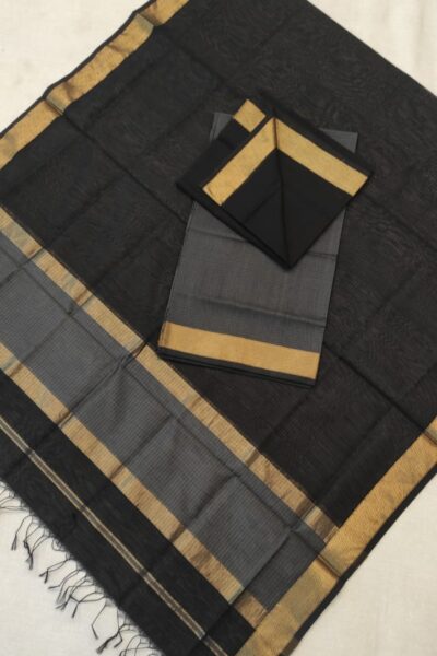 Black colour Maheshwari Cotsilk Top with Ochre Yellow Bottom and shaded Dupatta