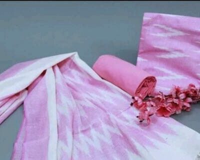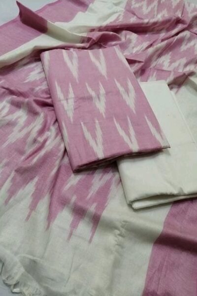 Light Pink Bhagalpuri Ikat Top and plain Light Pink Bottom with Ikat Dupatta